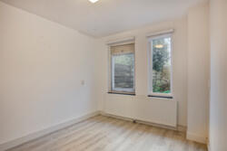 De tweede slaapkamer (ca. 9 m²) is eveneens tuingericht en voorzien van een groot raam.
