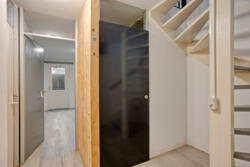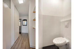 Ook via de inpandige berging is het appartement toegankelijk. Hier bevindt zich een gang die toegang geeft tot twee slaapkamers en de badkamer met toilet. Ook is hier nog een vaste kast.
