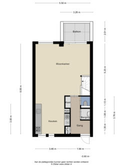 50 m² (10m diep en 5m breed)
