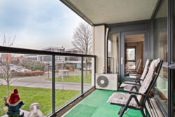 Het ruime balkon op het zuidwesten is een heerlijke plek om te ontspannen. Hier kunt u comfortabel een tuinset plaatsen en genieten van lange zomerse middagen en avonden in de zon. Op warme dagen zorgt een screen voor de nodige schaduw.