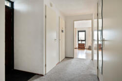 Via de lift of het trappenhuis bereikt u de eerste verdieping. De overdekte galerij brengt u naar de entree van het appartement. In de ruime hal vindt u de garderoberuimte, de meterkast, een separaat toilet, de bijkeuken/wasruimte, de badkamer en toegang tot de drie slaapkamers en de woonkamer.