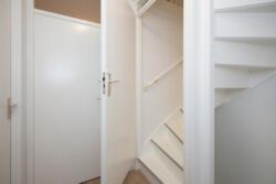 Entrance with spacious hall where the meter cupboard, separate toilet, stairs, stair cupboard and access to the living room with open kitchen are located.