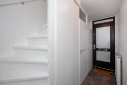 Entree met ruime hal voorzien van meterkast, separaat toilet, trapopgang, trapkast en toegang tot de woonkamer met open keuken.