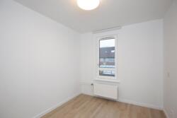 Overloop met drie ruime slaapkamers. Aan de voorzijde bevindt zich één slaapkamer, voorzien van rolluiken. De andere twee slaapkamers liggen aan de achterzijde.