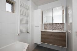 De badkamer is uitgerust met een wastafel, tweede toilet en ligbad. De gehele verdieping is voorzien van een nieuwe laminaatvloer.