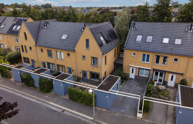 In de tuin bevinden zich 2 bergingen en een overkapping. Het terras bevindt zich aan de voorzijde van de woning.