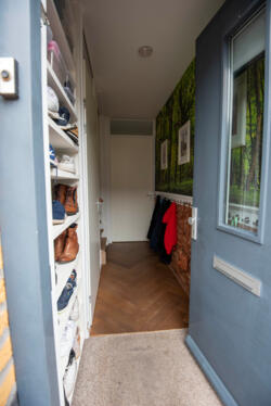 Via de voortuin met terras betreed je de hal met toilet en trap naar boven.