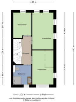 Op deze verdieping bevinden zich 3 slaapkamers, waarvan 2 grote- en 1 kleinere slaapkamer. De badkamer is voorzien van douchehoek, wastafel, toilet en radiator.