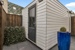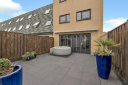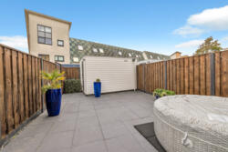 Het is nog even wachten op de volgende zomerse temperaturen, maar straks kunt u weer heerlijk genieten van de zon. De fraai betegelde, zonnige tuin beschikt over een ruime houten berging en meerdere gezellige zitplekjes, zowel in de zon als beschut. Bovendien is er een handmatig elektrische bedienbaar zonnescherm aanwezig. Via de achterom komt u direct uit op een speelpleintje dat veilig voelt door de woningen die het omringen. Lekker makkelijk voor een speelmomentje en om andere kinderen én ouders te ontmoeten. De voortuin is onderhoudsvriendelijk aangelegd met bestrating en ligt aan een rustige weg.