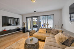 Een fraaie stalen deur leidt naar de lichte, tuingerichte woon- en eetkamer, voorzien van een trapkast en openslaande deuren naar de zonnige achtertuin. Zowel in de hal als in de woonkamer ligt een mooie houten vloer, die in 2024 nog een opfrisbeurt heeft gekregen.