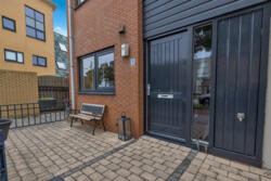 Via de betegelde voortuin, met ruimte voor een gezellig zitje, bereikt u de entree van de woning.