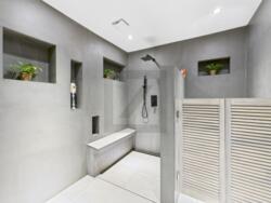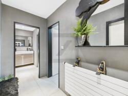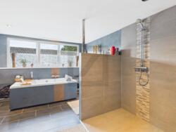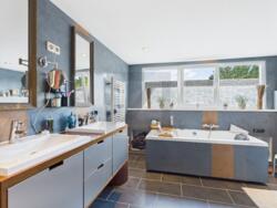 • Luxe daglichtbad in het hoofdgebouw (dubbele wastafel, ligbad, moderne armaturen) plus een eigen wellness-gedeelte met sauna.