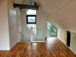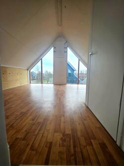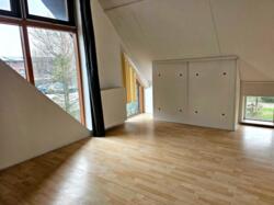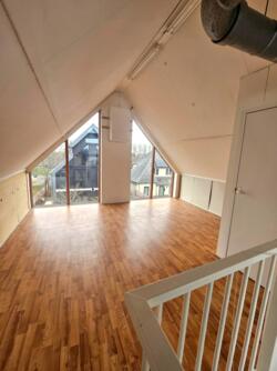 2e VERDIEPING: overloop, ruime (zolder) slaapkamer met hoog plafond en diverse speelse raampartijen, CV installatie en warmte terug win installatie (WTW-unit).