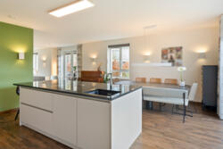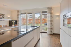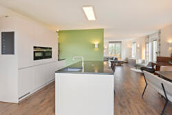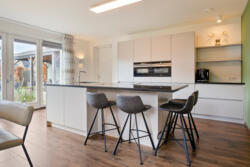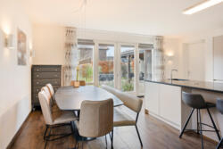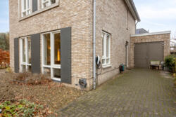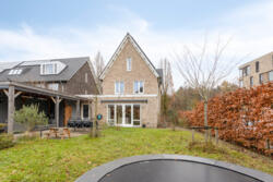 De woning is gebouwd in de karakteristieke Kempische stijl, met een sfeervolle aanbouw aan de achterzijde. Op de begane grond vind je een lichte L-vormige woonkamer met uitzicht op groen en een ruime open woonkeuken. Hier komt koken, tafelen en samen zijn volledig samen. De luxe keuken is voorzien van een kook- en spoeleiland, granieten aanrechtbladen, een kastenwand met koffiecorner en alle moderne inbouwapparatuur. Via openslaande deuren stap je zo de tuin en veranda in, perfect voor zonnige dagen of gezellige avonden.