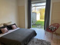 De woning beschikt over twee ruime slaapkamers. De grootste slaapkamer heeft eveneens openslaande deuren naar de tuin, wat zorgt voor een bijzonder rustige en groene sfeer. De badkamer is functioneel ingericht met douche. Het toilet is separaat.
