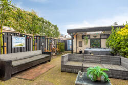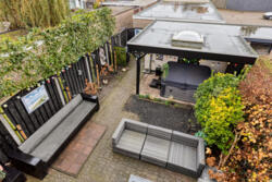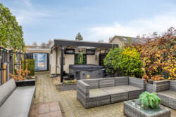De onderhoudsarme achtertuin op het oosten is een fijne plek om te ontspannen. Dankzij de groen blijvende Portugese leibomen uit 2024 en de schutting geniet je hier van optimale privacy. Er is voldoende ruimte om te loungen, barbecueën of spelen. De vrijstaande berging met bouwkundig afdak is ideaal voor fietsen, tuingereedschap en overige opslag.