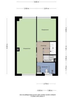 55 m² (9m diep en 6m breed)