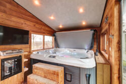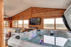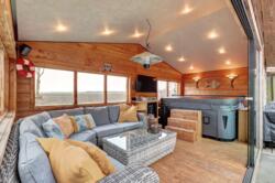 Het riante tuinhuis is voorzien van een knusse zitruimte met jacuzzi, mini bar, TV en uitzicht over de naastgelegen landerijen en alles wat de natuur u verder te bieden heeft is een prettig geheel voor de late uurtjes. De extra brede oprit aan de voorzijde biedt voldoende ruimte voor meerdere auto’s alsmede een prima parkeerplaats voor de camper.