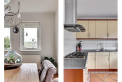 Royale hal, meterkast, toilet, L-vormige woonkamer met uitzicht over de groene woonomgeving, woonkeuken met terrasdeuren naar het terras gelegen op het westen, achteringang, garage, bijgebouw gelegen aan groenvoorziening en water.