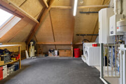De tweede verdieping biedt verrassend veel mogelijkheden. Deze royale zolder is uitstekend geschikt voor een vierde slaapkamer, een thuiskantoor, hobbyruimte of een combinatie hiervan. De wasmachineaansluiting bevindt zich eveneens op deze verdieping, en de ruime opbergmogelijkheden maken het geheel compleet.