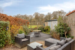 De achtertuin, gelegen op het zuidwesten, is een heerlijke plek om te ontspannen. Hier geniet je van privacy, de zon en het uitzicht. De tuin is onderhoudsvriendelijk aangelegd en biedt ruimte voor zowel ontspanning als speelplezier. Dankzij de handige zij ingang loop je eenvoudig naar de oprit waar je altijd je auto kwijt kunt op eigen terrein. De tuin is bovendien voorzien van water en stroom, ideaal voor tuinliefhebbers en lange zomeravonden.