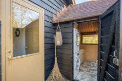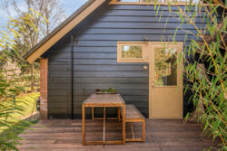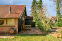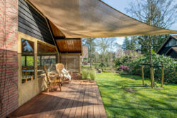 Ook de omliggende tuin heeft onlangs een grote opknapbeurt gehad. Daarbij is - waar nodig - gekapt, gesnoeid en vernieuwd. Ter afscheiding zijn niet woekerende bamboeplanten gezet, er is nieuwe aanplant gedaan en zijn twee bomen aangeplant. De stenen terrassen zijn vervangen door hoogwaardig hardhout. Aan de achterzijde bevindt zich een in hout uitgevoerde aangebouwde berging met aansluitend een openhaardhouthok. De berging is voorzien van elektra, wasmachineaansluiting en de nodige opbergruimte.