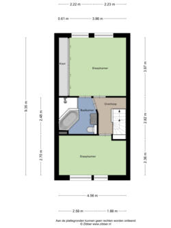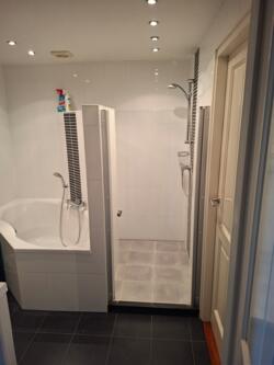 Op de 1e etage zijn twee ruime slaapkamers en een badkamer met ligbad, inloopdouche, toilet en badkamermeubel. De grote slaapkamer aan de achterzijde heeft een ruime kastenwand.