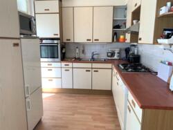 5- pits gaskookplaat, Siemens oven, vaatwasser, koelkast met diepvrieslades, magnetron en een afzuigkap.