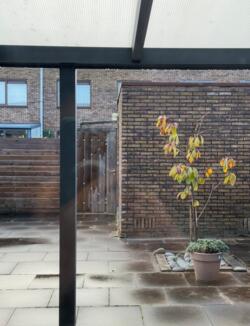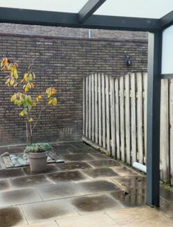 De achtertuin is een heerlijke plek om te ontspannen. Met nieuwe tegels, een overkapping en een handige achterom is dit een tuin waar je het hele jaar door plezier van hebt – of je nu zomers lang buiten wilt zitten of juist beschut wilt genieten in het voor- en najaar.