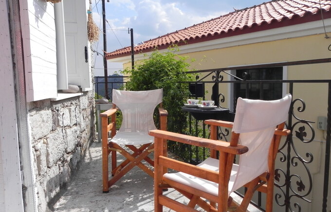 A lovely cottage named Te Warskip, in the settlement of Lafiona, located a short 10 or 15-minute drive to Petra. This 64sq.m two-storey house is sold as is, fully equipped and furnished. It matches an authentic outside with the restored and tastful conveniences inside. The plot of 39sq.m is mostly shaded by the house, and there is a balcony and small courtyard at the front of the house which contains an authentic sink with tap. The lower floor of the house consists of a bedroom and bathroom, whilst the upper floor of the house has the living room, the (open) kitchen and access to the balcony.