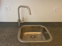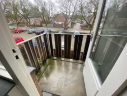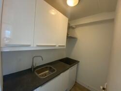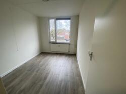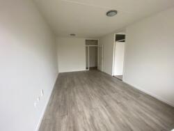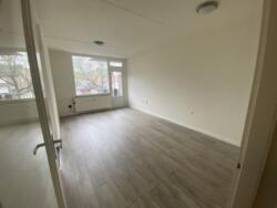 De witte aanbouwkeuken is voorzien van nieuwe koelkast, kookplaat, afzuigkap en kraan.. Naast de keuken bevindt zich de bergruimte (ca. 3 m2) met aansluiting voor de wasmachine en de nieuwe boiler. De woonkamer (18 m2) is voorzien van een grote raampartij. Hier bevindt zich de toegang tot het balkon.