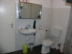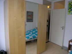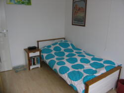 De slaapkamer is ca. 350x270 cm en bevindt zich naast de woonkamer. De badkamer is voorzien van douche, vaste wastafel met spiegelkastje en toilet.