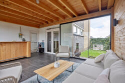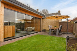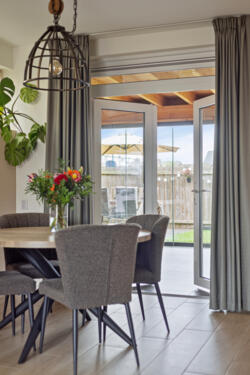Aan de achterzijde is de zonnige tuinkamer gelegen: deze biedt extra leefruimte met veel licht en direct contact met de tuin. Door de grote schuifbare raampanelen kun je deze ruimte ’s zomers inzetten als buitenruimte.