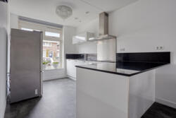 Bij binnenkomst komt u in de hal met meterkast, toilet en trapopgang. Vanuit hier betreedt u de uitgebouwde woonkamer, die direct opvalt door de ruimte en de prettige lichtinval dankzij de grote raampartijen. De ruime woonkamer biedt volop mogelijkheden voor een comfortabele zit- en eethoek. De begane grond is voorzien van vloerverwarming, wat bijdraagt aan een strak en comfortabel geheel. Aan de voorzijde bevindt zich de open keuken, die praktisch is ingericht en beschikt over diverse inbouwapparatuur.
