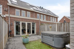 De achtertuin biedt een fijne plek om te ontspannen en in alle rust te genieten van de ochtend- en middagzon. Achterin de tuin bevinden zich een jacuzzi, een houten berging en een praktische achterom.