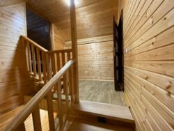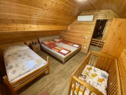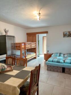 Op de verdieping van het bijgebouw bevinden zich 2 ruime slaapkamers, waarvan 1 slaapkamer is voorzien van een tweepersoons-, een éénpersoons- en een baby bed. Vanuit deze slaapkamer is er toegang tot een klein balkon. De tweede slaapkamer is voorzien van een groot tweepersoons- en een stapelbed. Deze kamer geeft toegang tot een groot terras. Dit bijgebouw is volledig voorzien van airco.