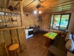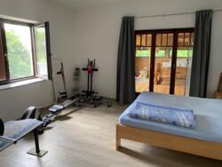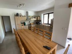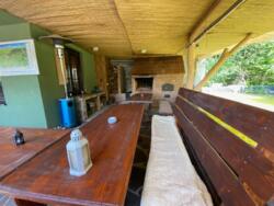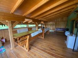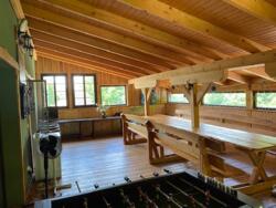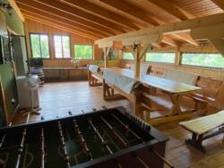 Boven de garage en ook aansluitend aan het woonpand bevindt zich een mooie grote ruimte, volledig gemeubileerd met hardhouten meubels en verwarmd middels een houtkachel. Deze ruimte is perfect geschikt voor het houden van feesten, partijen en vergaderingen of als speelruimte voor kinderen wanneer het weer buiten wat slechter is.