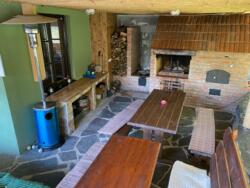Het bijgebouw op het terrein is perfect geschikt om (betalende) gasten in onder te brengen. Op de begane grond bevindt zich een infrarood sauna met eigen badkamer en toilet. De trapopgang naar 2 appartementen op de verdieping, met onder de trap een badkamer met ruime douchecabine en toilet. Ook op de begane grond een bar/leefkeuken die aansluit op een groot overdekt terras voorzien van hout gestookte barbecue/heksenketel verwarming en pizza oven. Naast het grote overdekte terras ligt een prachtig onderhouden zwemvijver met natuurlijk, onbehandeld en chemicaliën vrij water.