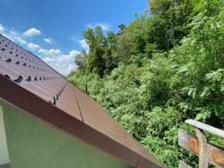 Vanuit het woonpand heeft men een prachtig uitzicht over het eigen terrein wat in hoogte verschilt alsmede op de heuvels waarin het terrein zich bevindt. Het prachtige, milieuvriendelijke en duurzame woonpand is ruim en modern met een mooie grote keuken, 2 slaapkamers, badkamer met douche en ligbad, apart toilet en inpandige toegang tot lager gelegen garage via de kelder.