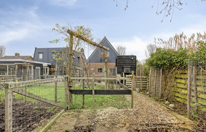 De grote achtertuin is een waar paradijs voor kinderen en huisdieren. De tuin biedt de mogelijkheid om je eigen groente, fruit, kruiden en bloemen te verbouwen en er zijn volop speeltoestellen, de browsing paddock, de veranda/stal (2024) en een vergroot tuinhuis met houtkachel voor extra comfort. Er is ook een overdekte houtopslag en een overdekte fietsenstalling, zodat je de tuin optimaal kunt benutten. Aan de voorzijde van de woning is er voldoende parkeergelegenheid voor twee auto's, en je hebt direct toegang tot het terras en de tuin.