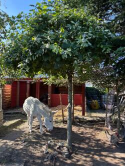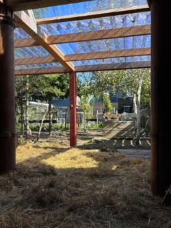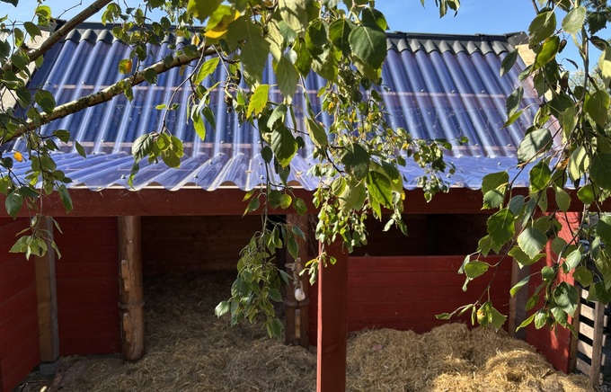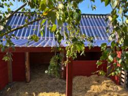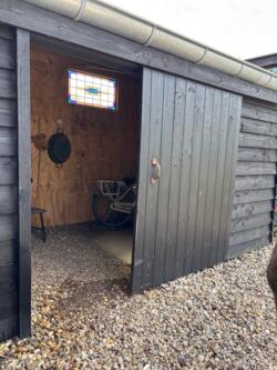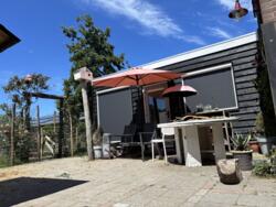 terras / skelter ruimte en parkeer mogelijkheid voor twee auto’s. Achter de woning is de grote achtertuin met een terras, schuilstal/veranda, overdekte fietsenstalling, vergroot tuinhuis met houtkachel, overdekte hout opslag, en speeltoestellen.