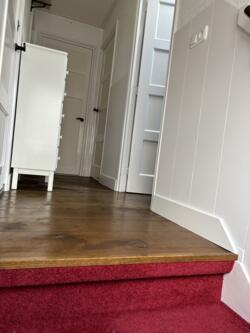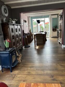 In 2024 is op de begane grond onder de vloer schuimbeton isolatie aangebracht, de eikenhouten vloer opnieuw gelegd en geolied.