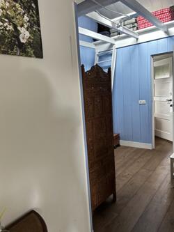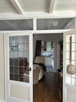 De oorspronkelijke garage aan de achterzijde van de woning is meest recent geheel vernieuwd en getransformeerd tot studio met veel licht.