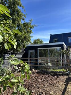Hier zijn de ramen, deuren en platdakraam voorzien van HR+++triple glas.