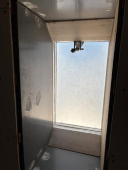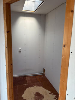 De overloop en de bergruimte zijn voorzien van daklichten die toegang geven tot het dak.