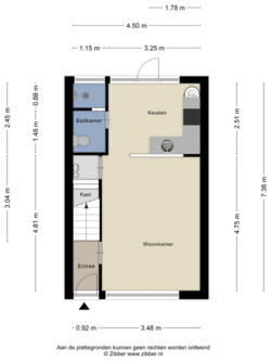40 m² (9m diep en 4,50m breed)