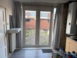 Verder bestaat de begane grond uit een woonkamer met aangrenzend een keuken met dubbele deuren die toegang geven tot de tuin. Tevens bevindt zich in de keuken de douche/toilet combinatie.