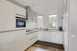 Zodra je binnenkomt, valt de royale en lichte woonkamer met Frans balkon direct op. De ruimte is perfect in balans qua afmetingen en voelt meteen als een fijne leefomgeving. De open keuken is volledig uitgerust met moderne inbouwapparatuur en heeft een slimme hoekopstelling die zorgt voor veel werk- en bergruimte. Aangrenzend vind je een handige inpandige berging met ruimte voor wasmachine, droger en de cv-installatie.