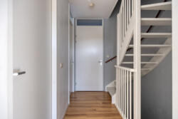 De tweede verdieping biedt een vierde slaapkamer met dakraam aan de achterzijde, alsook de CV-opstelling, het mechanisch ventilatiesysteem en de wasmachineaansluiting. De woning is volledig geïsoleerd en voorzien van vloerverwarming, wat bijdraagt aan het energiezuinige wooncomfort (energielabel A).