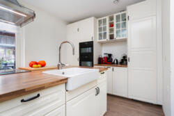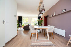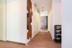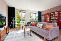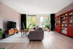 De woning beschikt over vier kamers, waaronder drie slaapkamers, een lichte woonkamer en een moderne keuken met inbouwapparatuur. Het appartement is recent gerenoveerd en biedt een royale indeling.